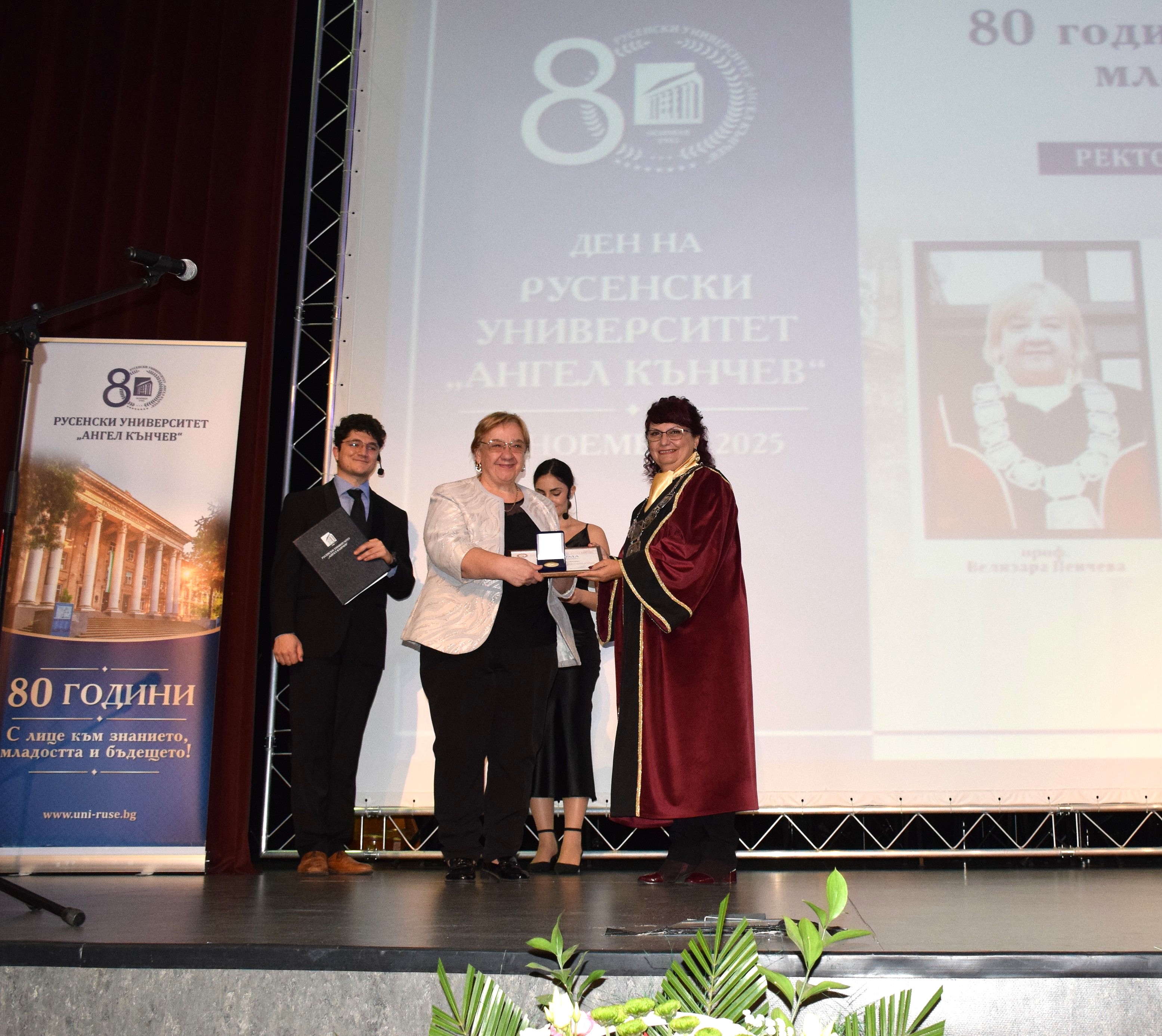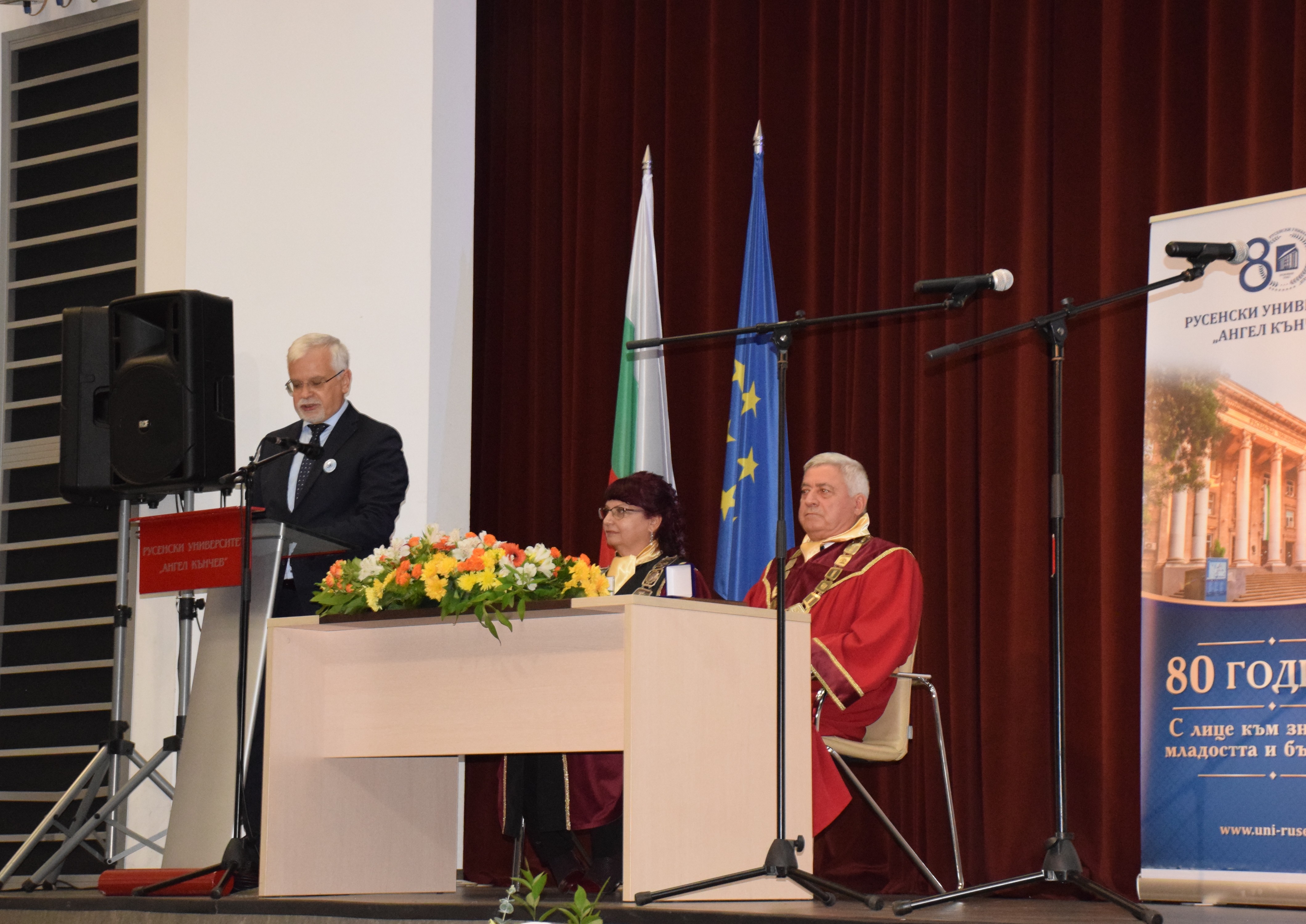 Guests at the ceremony included the Rector of the University of Ruse "Angel Kanchev", Assoc. Prof. Desislava Atanasova, PhD, Acad. Hristo Beloev, Honourary Rector and Chair of the University General Assembly, DscEng, Vice-Rectors Prof. Teodor Iliev, PhD and Assoc. Prof. Galina Ivanova, PhD.