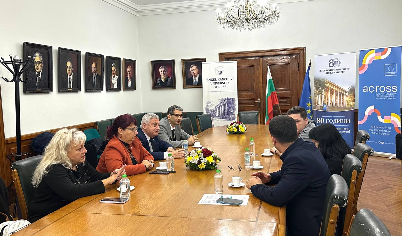 Today, January 31st , 2025, an informational meeting of the team involved in the work program under the ACROSS-European University for Cross-border Knowledge Sharing project was held in a meeting room of the Rectorate of the University of Ruse.